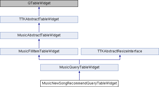 Inheritance diagram for MusicNewSongRecommendQueryTableWidget:Public Slots | |